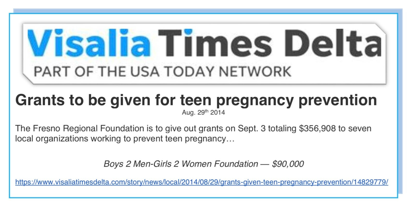 "Your commitment to addressing Fresno's school dropout rate and teen pregnancy problem are commendable."